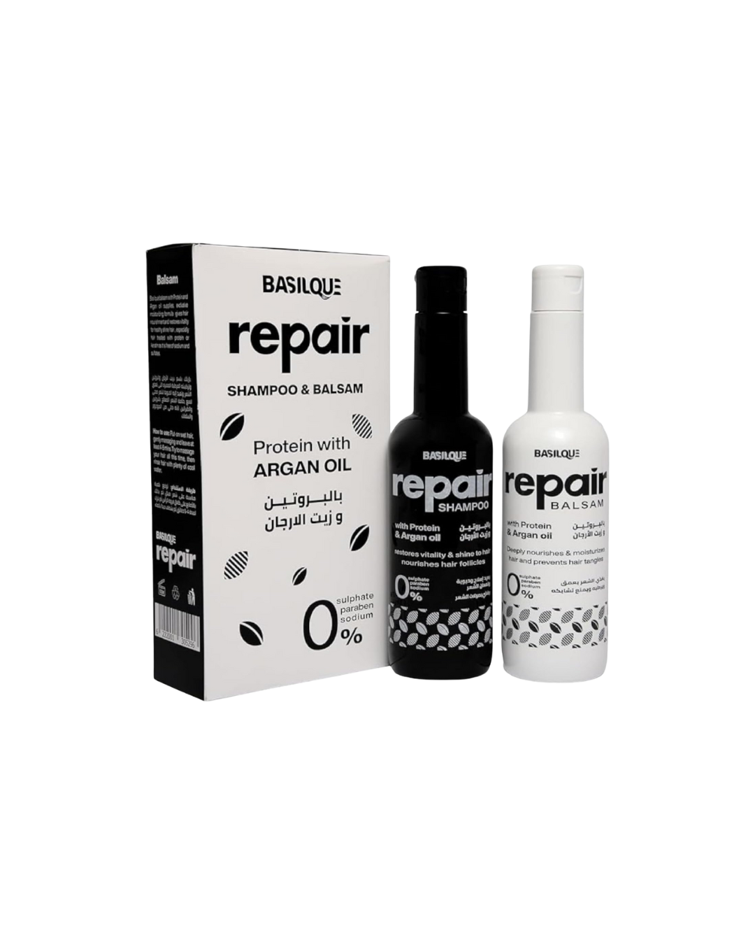 Le duo Basilque Zero Sulfate associe un shampooing et un après-shampooing enrichis en protéines et huile d’argan pour reconstruire la fibre capillaire. Spécialement conçu pour les cheveux traités (kératine, protéines), il restaure brillance et vitalité sans agresser le cuir chevelu. Résultat : des cheveux soyeux et disciplinés.